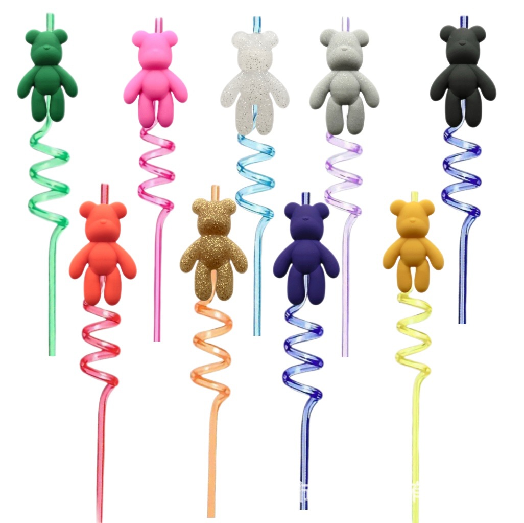 新しいカラークマ漫画ストローPVCパターンスタイルストロー装飾ストロー熱売取り外し可能な装飾