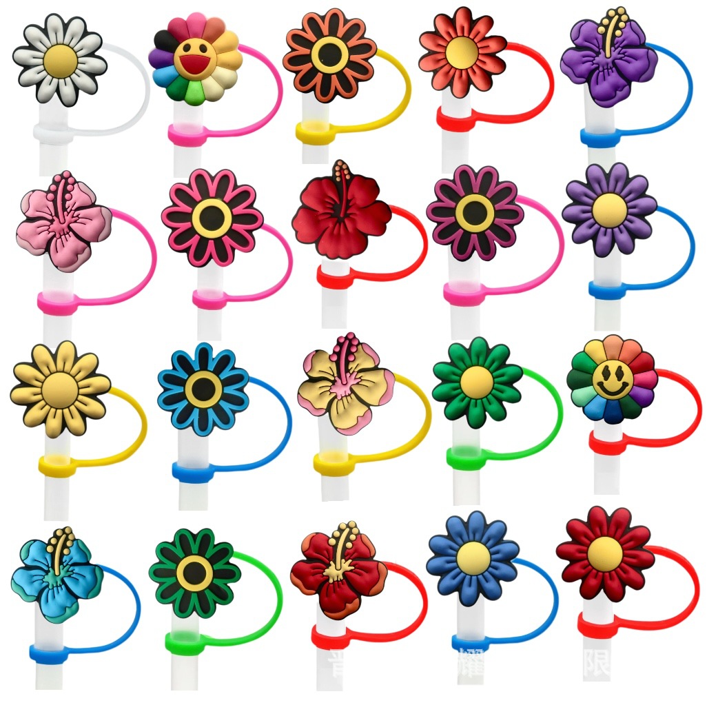 小さな花シリーズストローキャップストロースリーブシリコンダストプラグパーティーカップストロー装飾スリーブスポット卸売