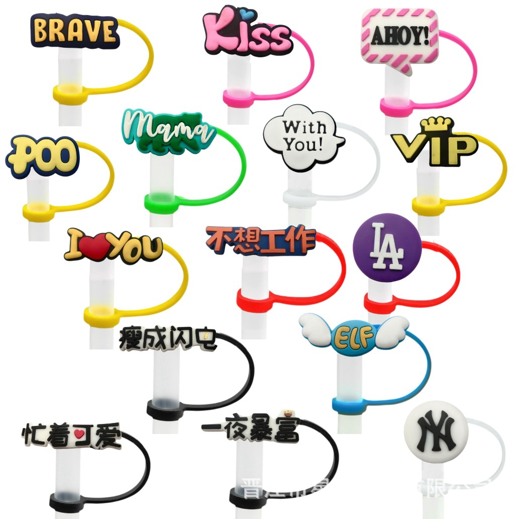クロスボーダーレターストリップ食品グレードのシリコーンストローキャップダストキャップ漫画飲料ストローカバーダストカバースポット