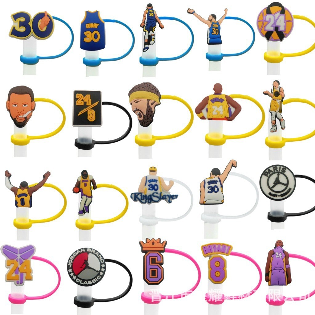 NBAのバスケットボールのテーマのストローカバーのストローキャップのシリコンの防塵プラグのかわいい漫画のパーティーのストローの装飾の現物