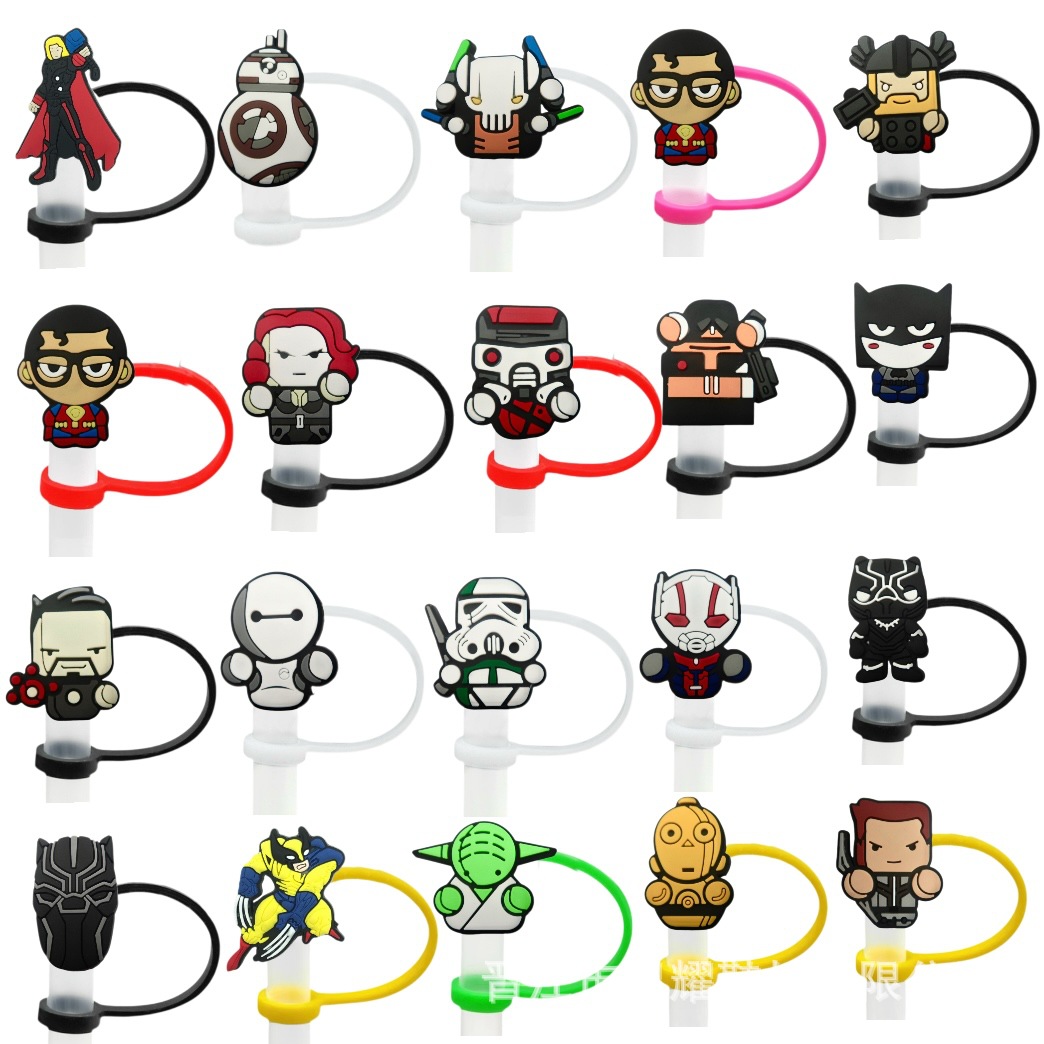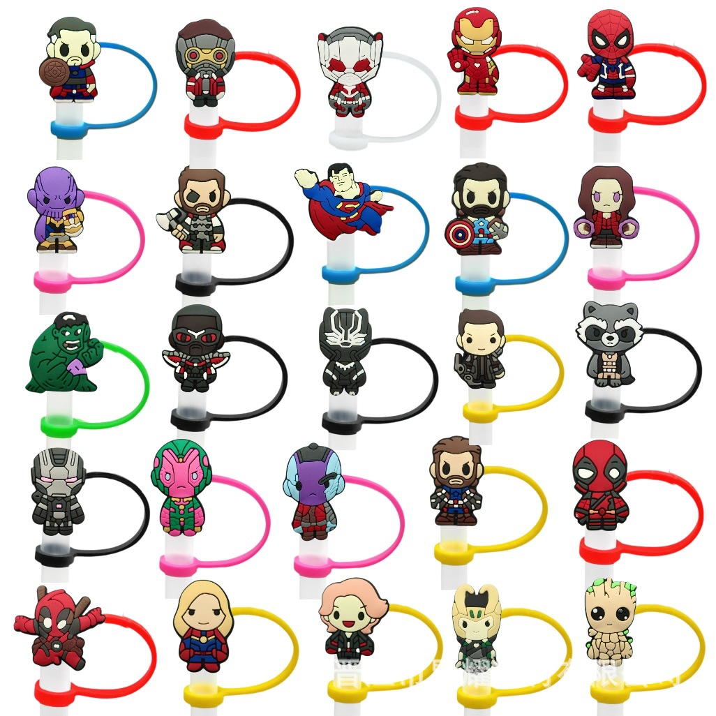 漫画漫威シリーズ防塵ストローキャップdiyクリエイティブストロー装飾キャップ8/10mmシリコンストローカバー