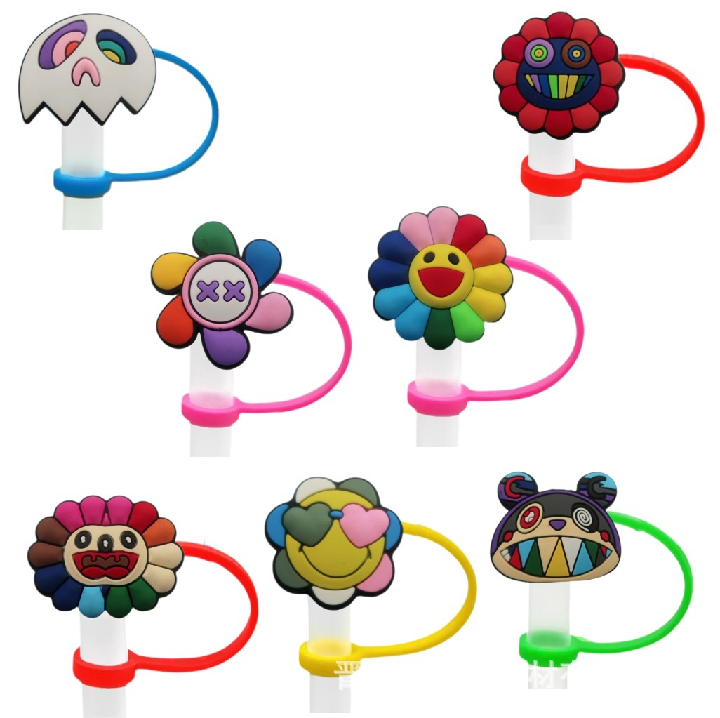 カラフルな花ストローカバーシリコン防塵プラグパーティーストロー装飾バックルクリップパーソナライズされた漫画在庫あり