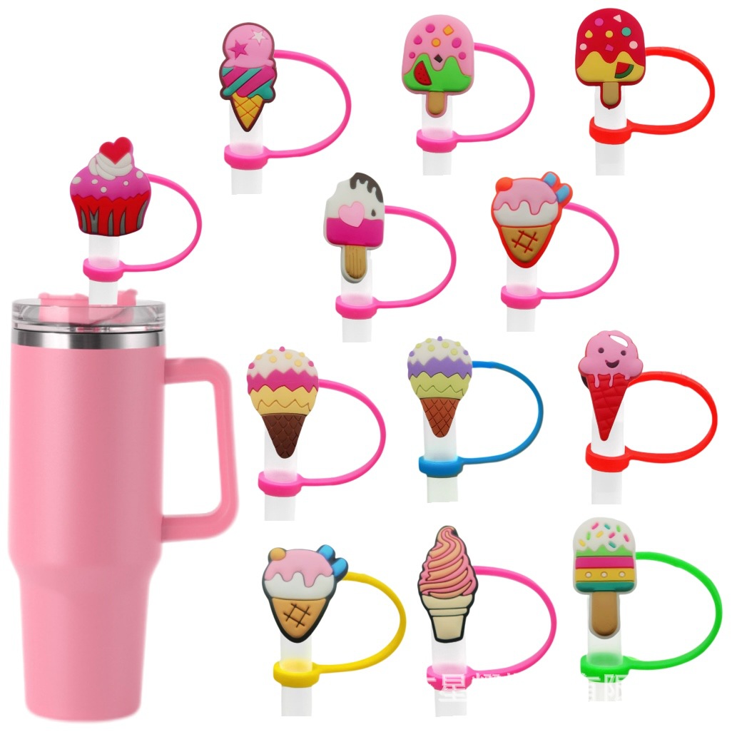 アイスクリームかわいいストローキャップ個性的なシリコーン8-10mmストロースリーブパーティーストロー装飾キャップダストカバー