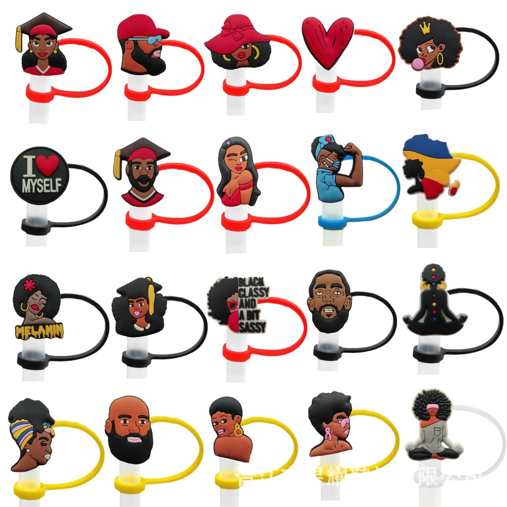 黒人シリーズの造形防塵ストローキャップdiy創意漫画ストロー装飾カバーシリカゲルストローが現物を塞ぐ