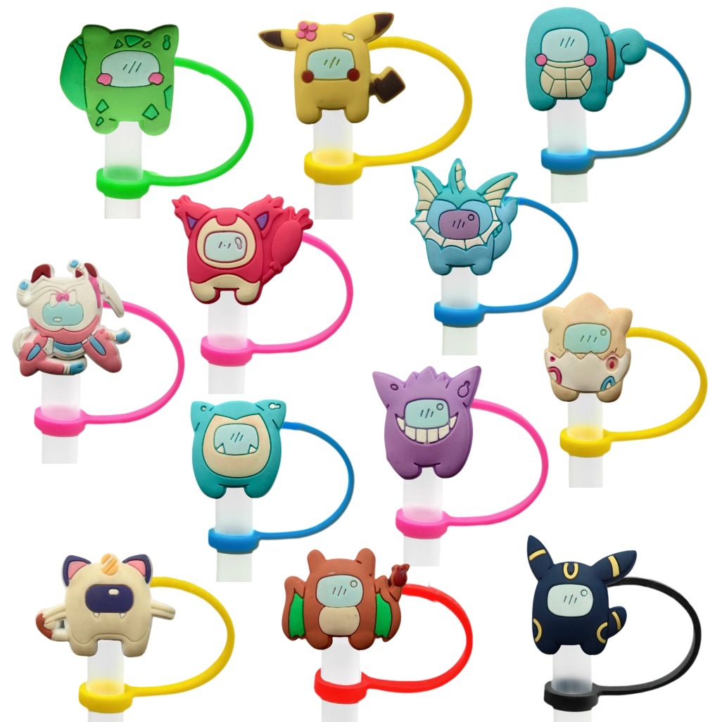 ポケモンストローキャップストローカバー再利用可能なかわいいシリコンストローカバーアクセサリー diy 装飾