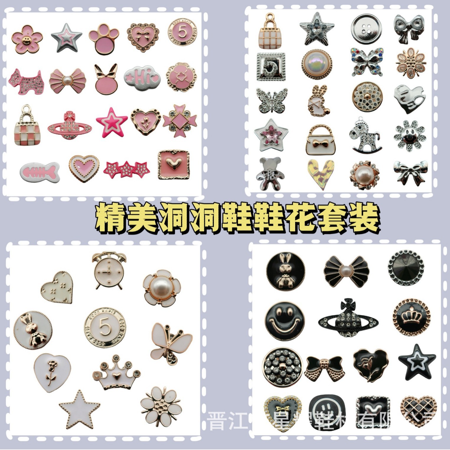 新しい穴の靴の花の靴のボタンのセットのシリーズの精巧な女の子の靴の部品の装飾は靴の装飾の現物の卸売りを掛けます。