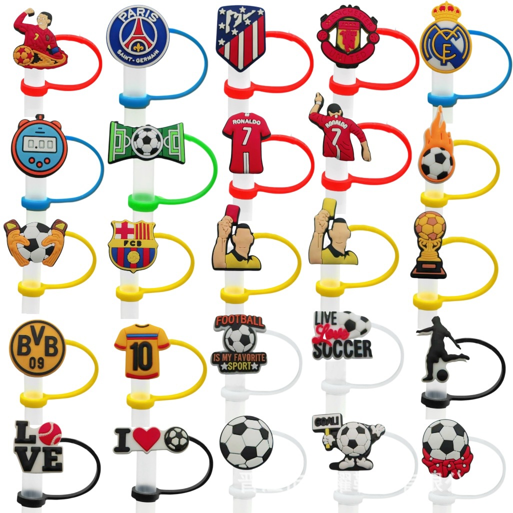 サッカーのテーマのストローカバーのストローキャップのシリコンの防塵プラグのかわいいアニメストローの装飾品の現物卸売り