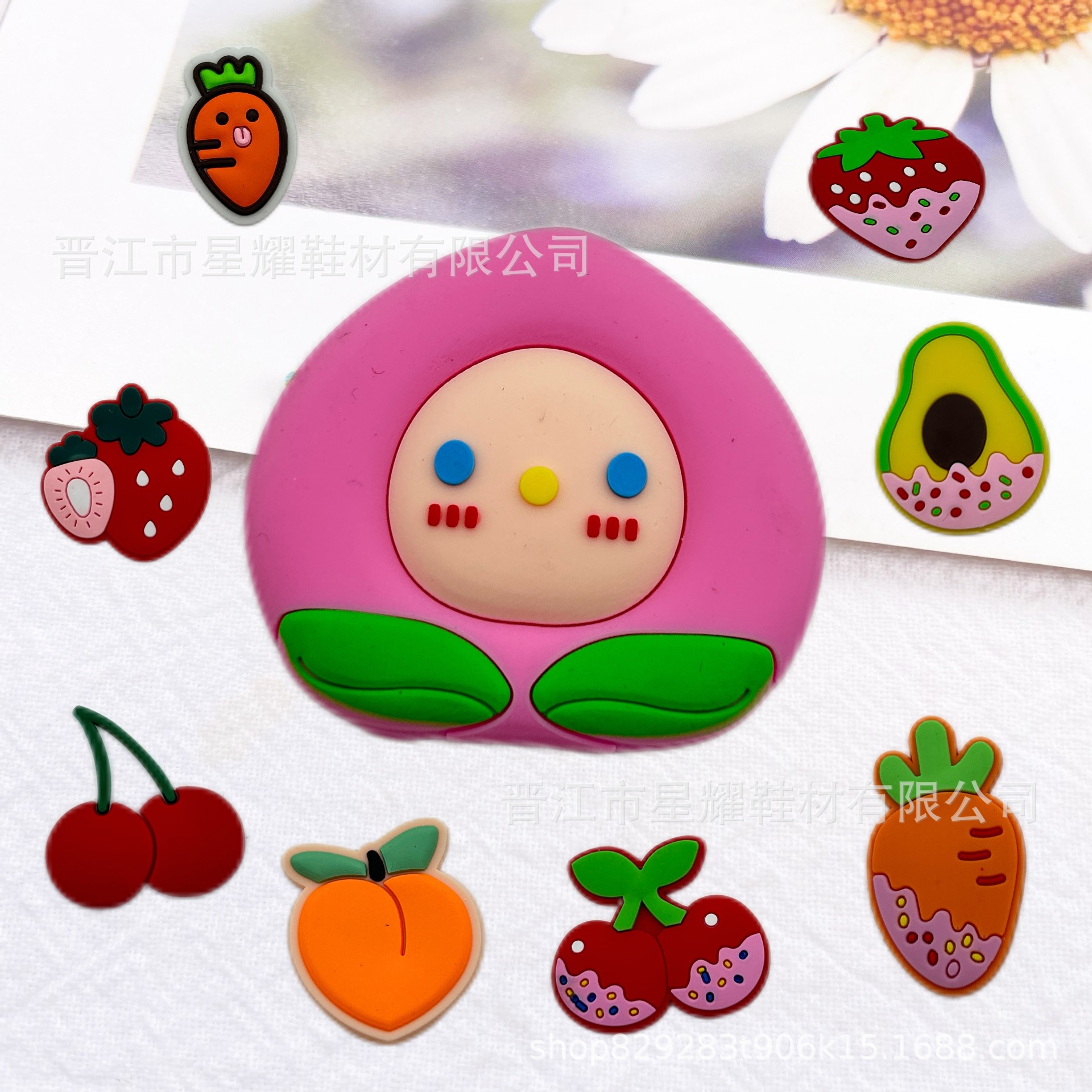 笑顔のピンクの桃の靴の花の穴の靴diyの装飾の靴のボタンの部品のかわいい動物のpvcのプラスチックの装飾は国境を越えます。