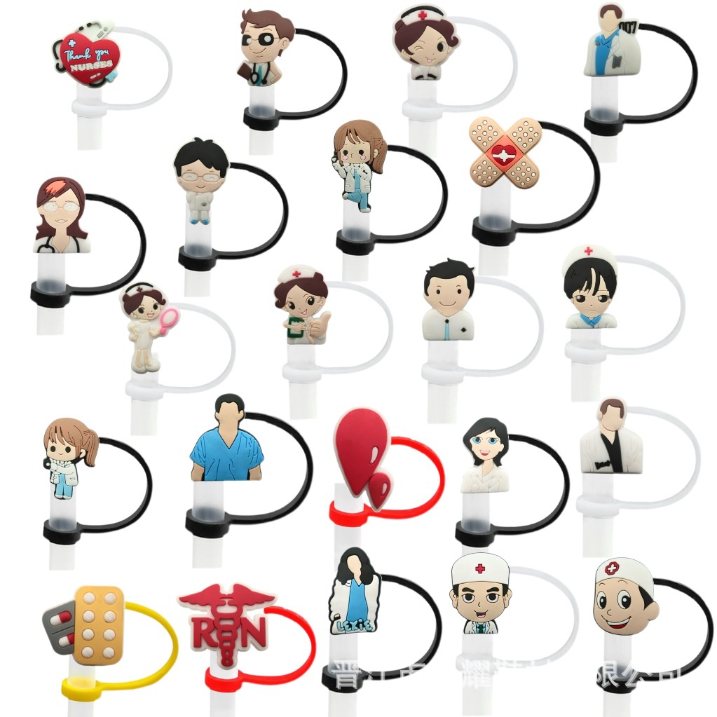 クロスボーダー漫画医療チーム防塵ストローキャップdiyクリエイティブ漫画ストロー装飾バックルpvcソフトストロープラグ