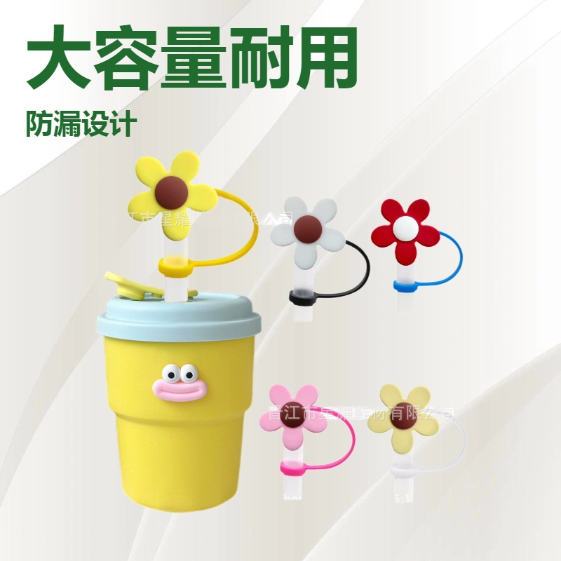クロスボーダー漫画小さな花防塵ストローキャップ diy クリエイティブ漫画ストロー装飾バックルシリコーンストロープラグ