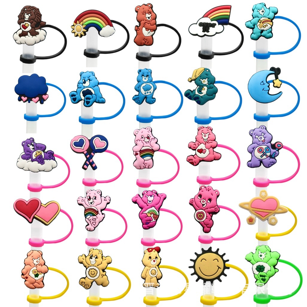 虹熊シリーズストローカバーストローキャップシリコン防塵プラグかわいいアニメストロー装飾品スポット卸売り