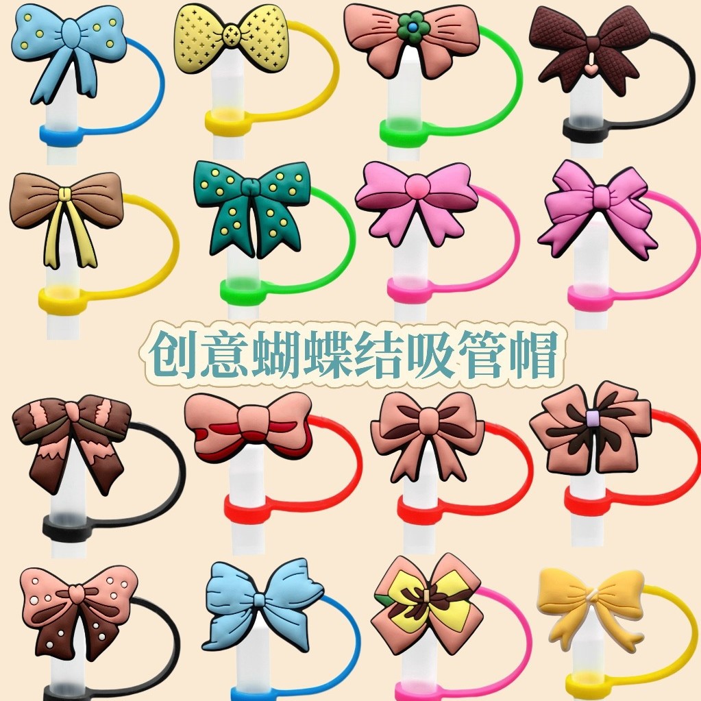 かわいいリボンシリーズストローキャップパーソナライズされたシリコンストロープラグ防塵ストローキャップ在庫卸売