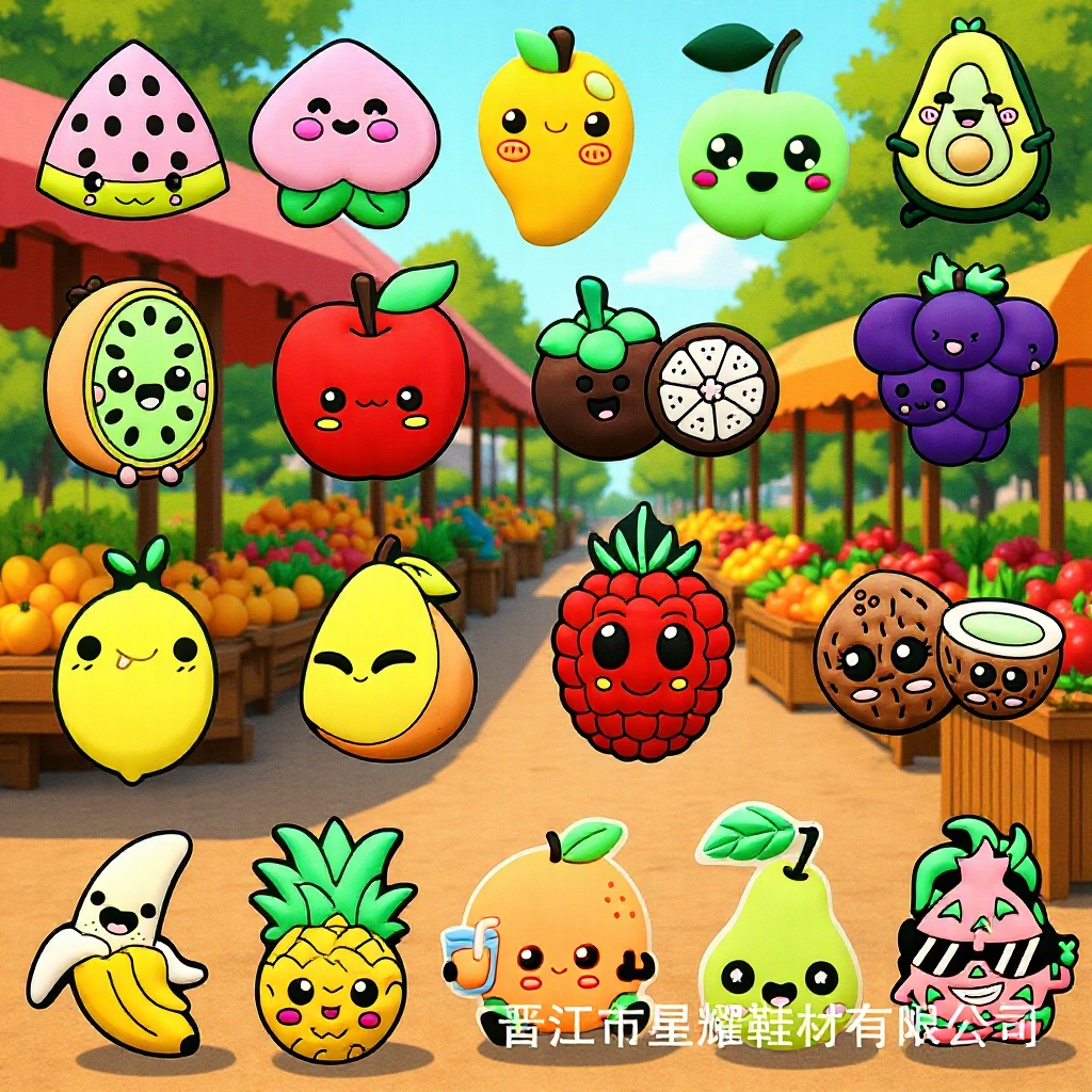 新しいホット販売かわいいフルーツ下駄花靴バックル DIY 取り外し可能な PVC ソフトゴム装飾バックルクロスボーダースポット