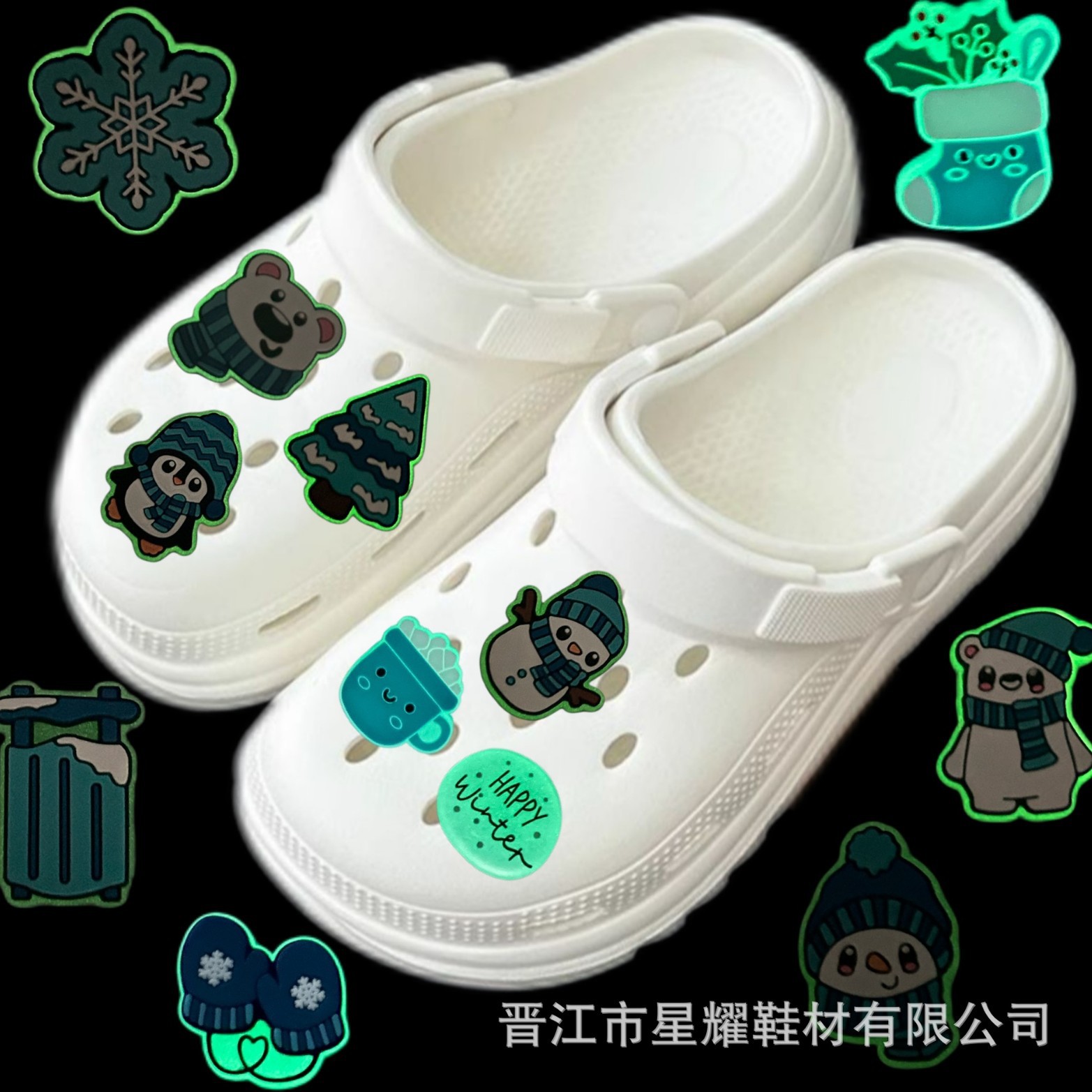 新作夜光冬シリーズテーマ洞靴花靴バックルクリスマス靴アクセサリー夜光パッチ現物