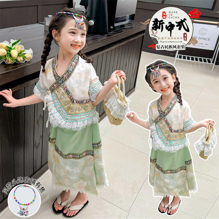 ダイ族服女の子エスニックスタイルスーツ夏 2025 新しい子供の西部地域プリンセス服レトロ少女