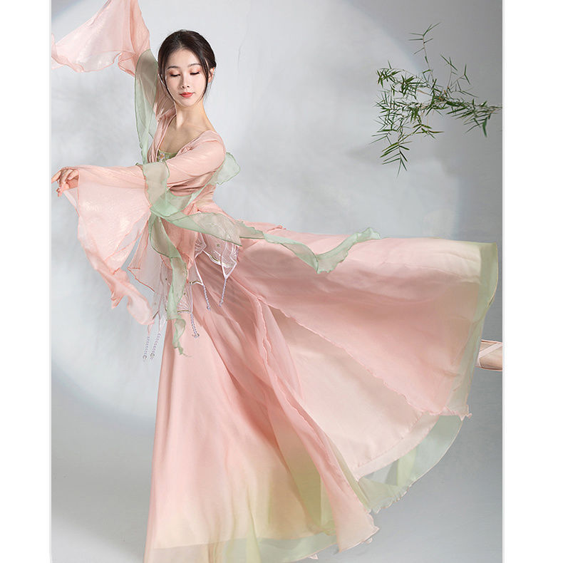 ダンスクラシックダンス衣装ボディ韻ガーゼ女性のエレガントな妖精中国舞踊ワイドレッグパンツパフォーマンス衣装セット