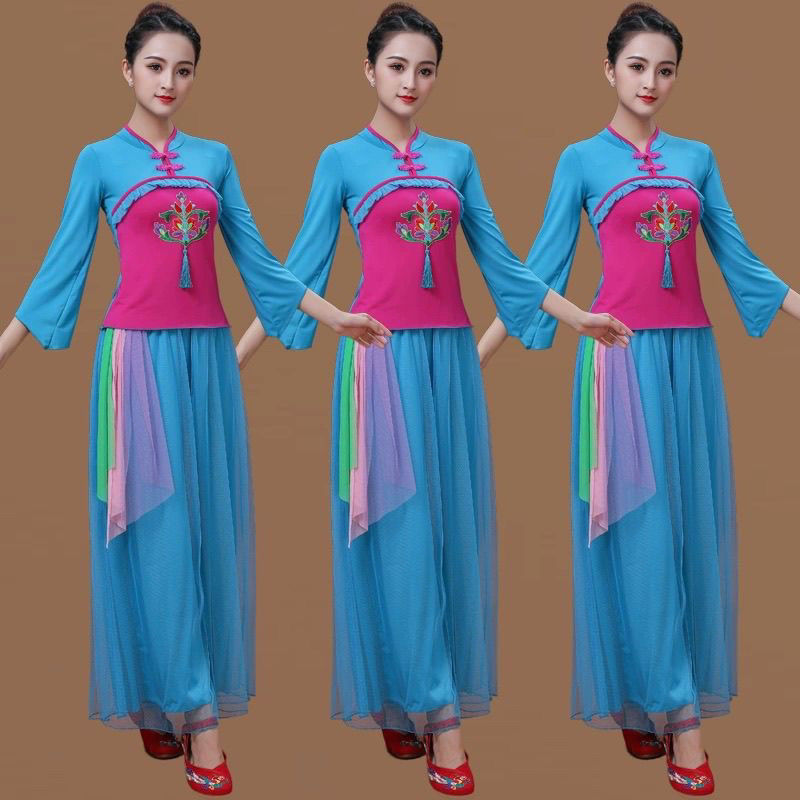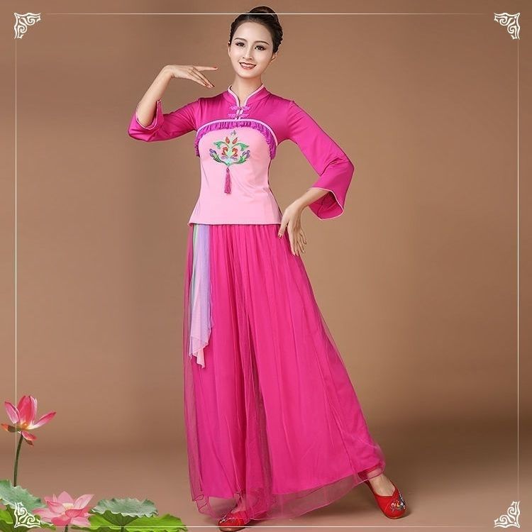 スクエアダンス衣装新しいスーツ女性のエスニックスタイル古典的な楊子ファンダンス衣装スカートパンツダンス衣装パフォーマンス衣装