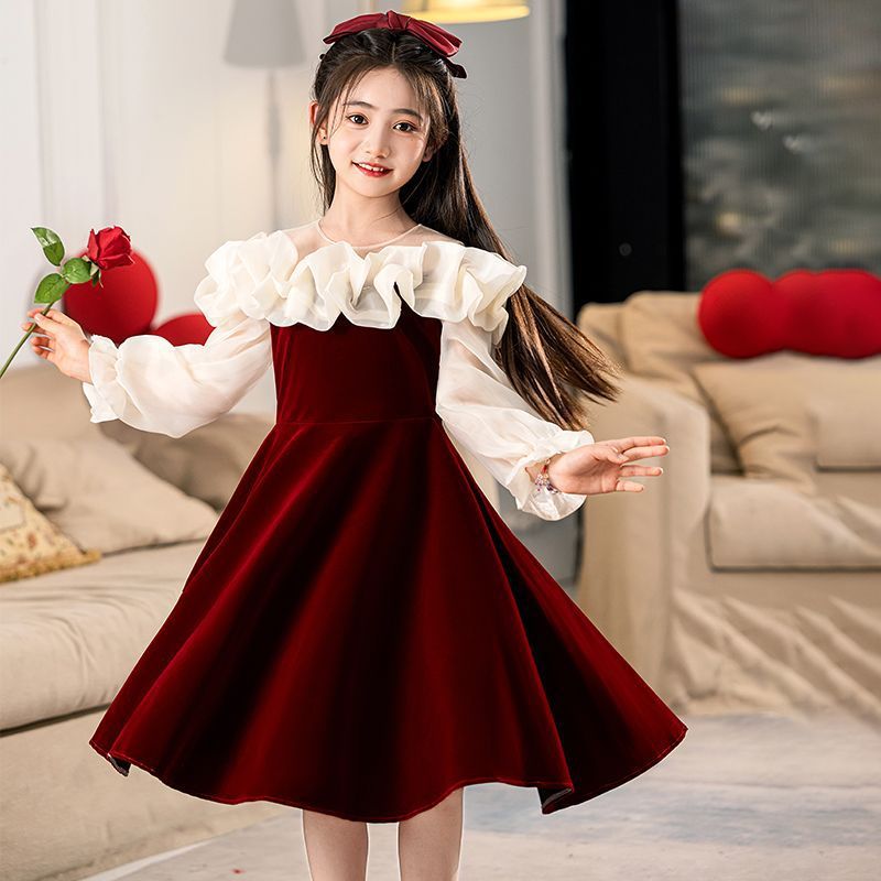 子供の赤い愛国朗読パフォーマンス服、小学生コーラス服、祖国を歌う男の子と女の子の小さなホストドレス