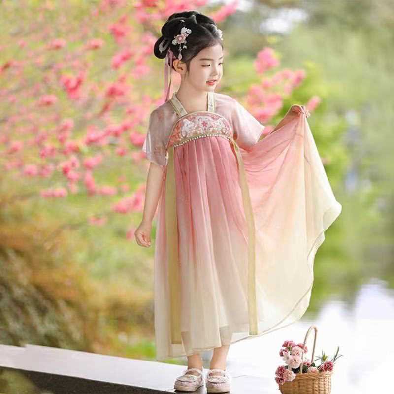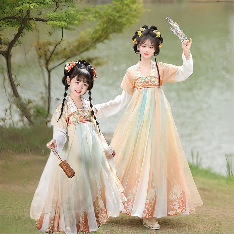漢服女の子 2024 夏の新唐装子供の古代スタイルスーパー妖精スカート母娘親子着用中国風ドレス