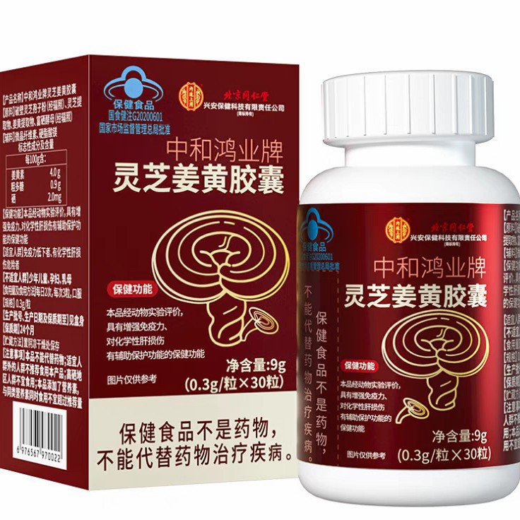 北京銅仁堂-中和紅業ブランド霊芝ウコンカプセル 30 カプセル、ドロップシッピング、大量、価格、優れた品質