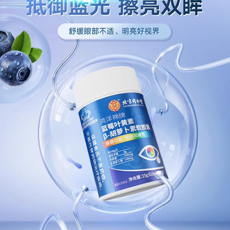 北京同仁堂鴻洋神牌ブルーベリー葉黄素 β カロチン軟カプセル15g 30粒