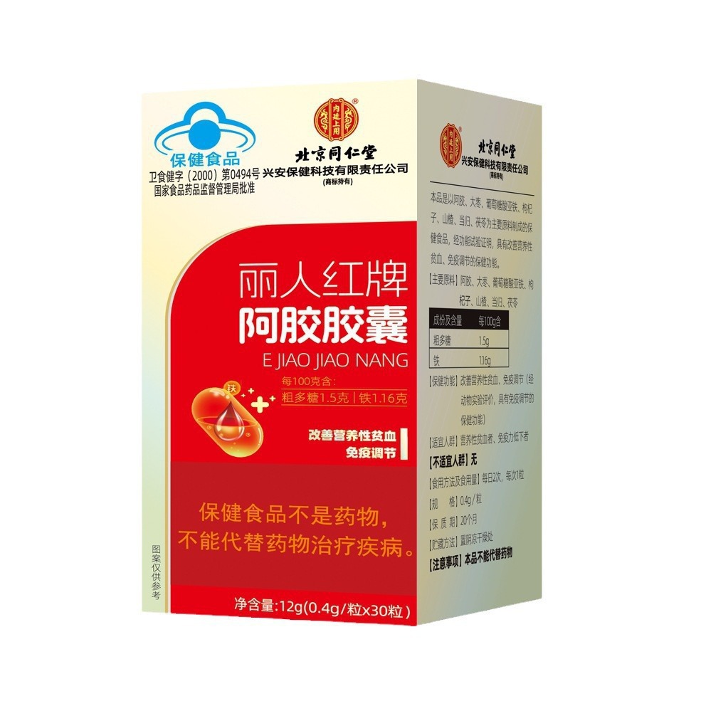 北京同仁堂内延上用丽人紅牌阿膠カプセル30粒吸収しやすい無痕出荷代発