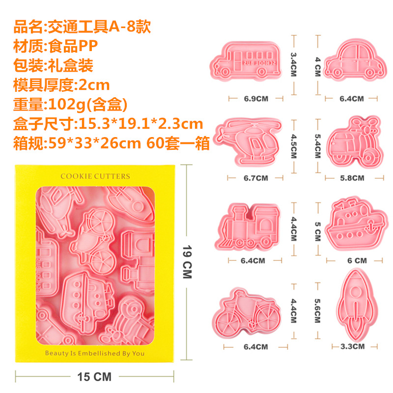 交通机関クッキー金型3dプラスチック立体アイシングクッキーケーキプッシュ式ベーキング家庭用スタンプスタンプ