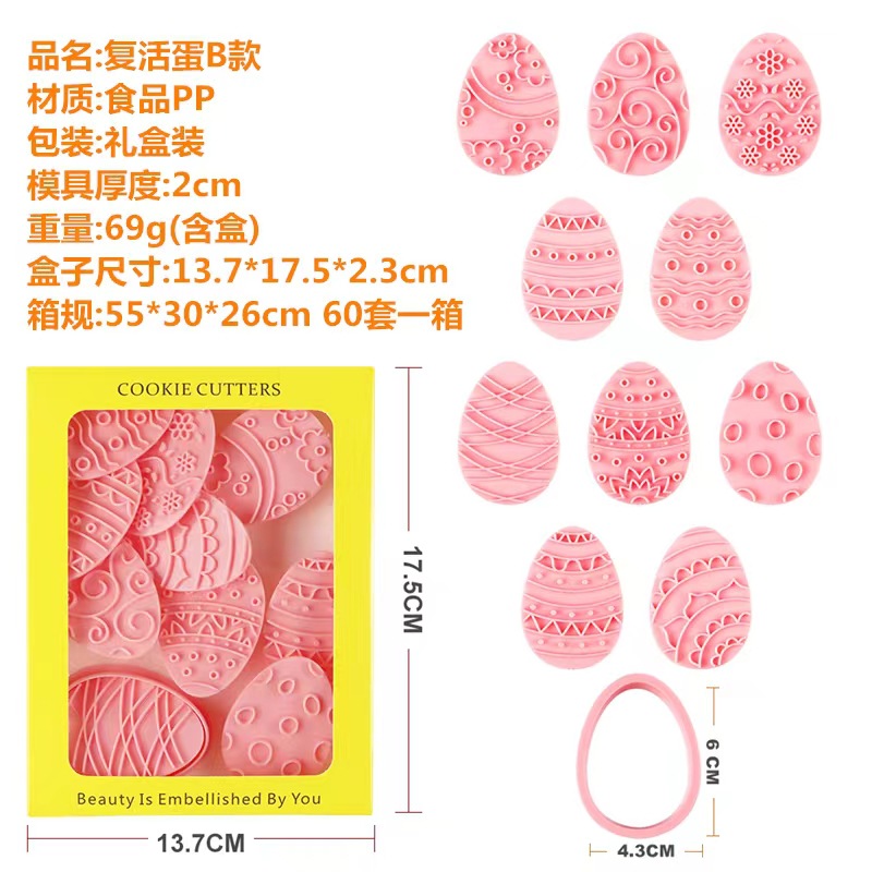 イースターエッグビスケット金型3dプラスチック立体砂糖クリーム砂糖クッキープレス式焙煎家庭用プレス印鑑