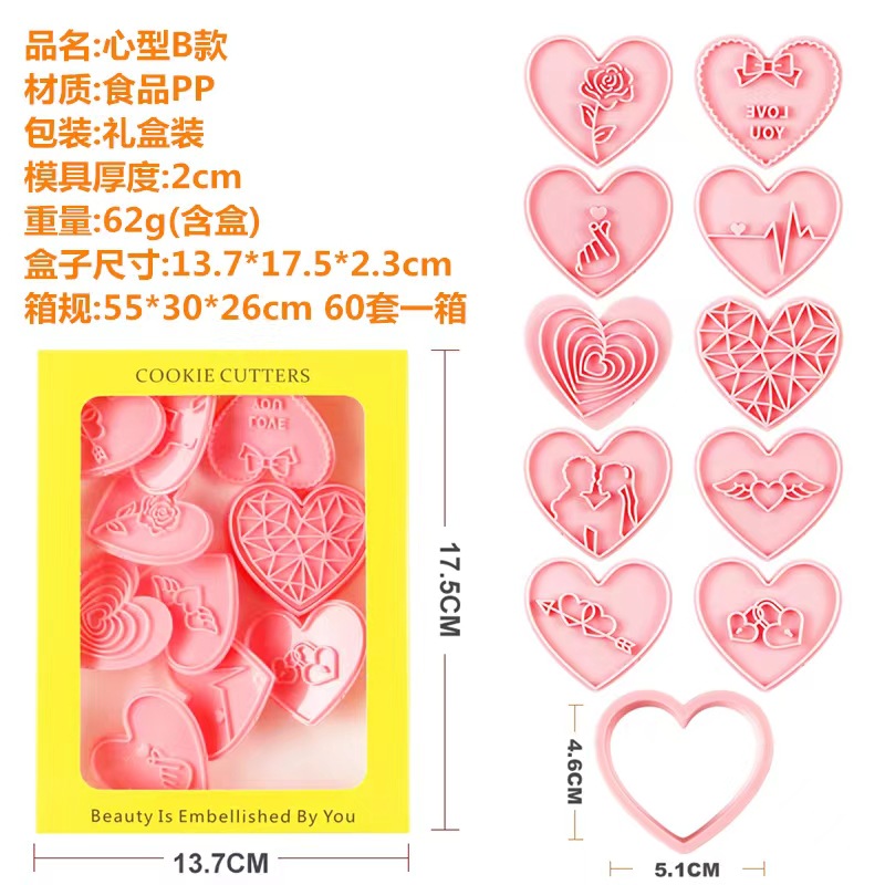 ハート型ビスケット金型3dプラスチック立体砂糖クリームクッキープレス式焙煎プレス金型印鑑結婚式バレンタインデー