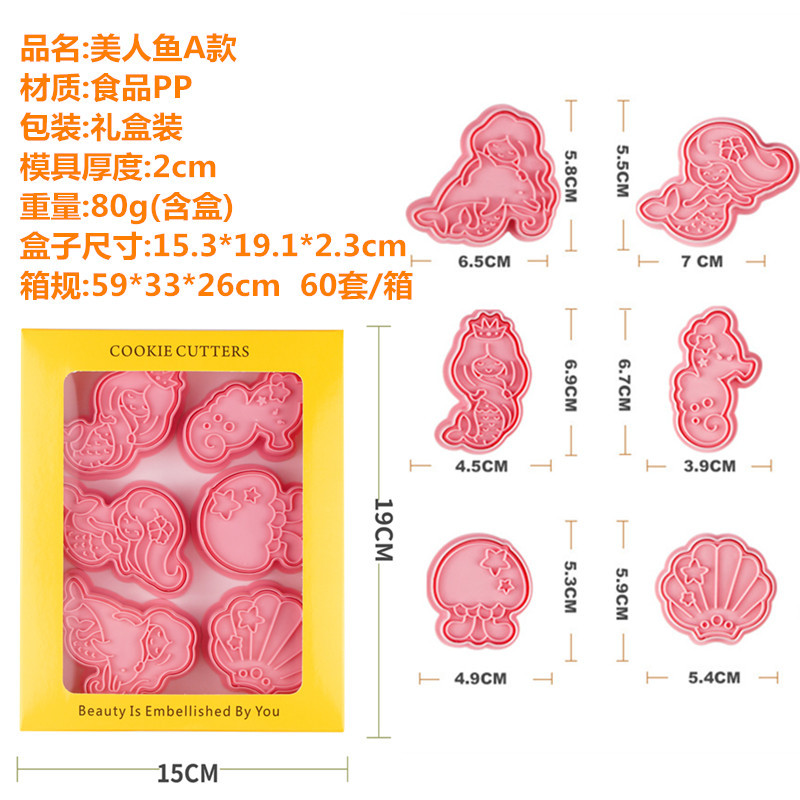 マーメイドビスケット金型3dプラスチック立体砂糖クリーム砂糖クッキー押圧式焙煎家庭用プレス印鑑