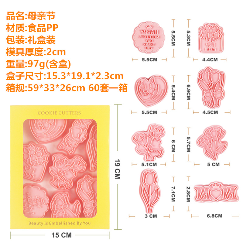 母の日ビスケット金型プラスチック3d立体家庭用ケーキ金型プレス式ベーキングツールクッキー印鑑金型