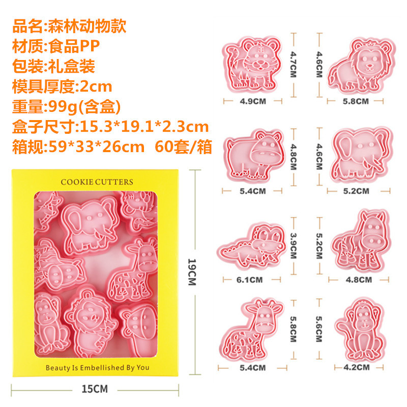 森林動物ビスケット金型プラスチック3d立体家庭用ケーキ金型プレス式ベーキングケーキキキガトラ