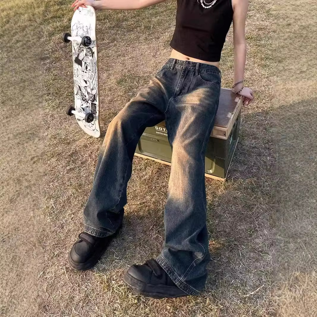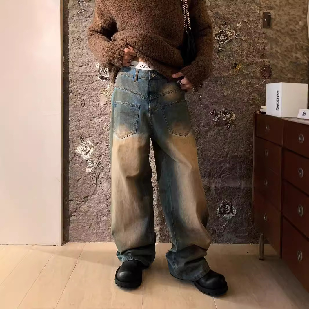 アメリカ式高街Vibe風ファスナー小衆デザイン感ジーンズ男性ins潮牌ラッパズボン高腰広脚ズボン