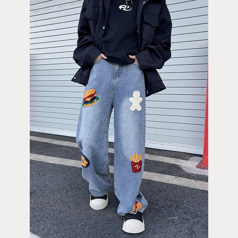 小衆高街プリントジーンズ女夏美式ヒップホップストレートズボンcleanfit潮牌広脚モップズボン