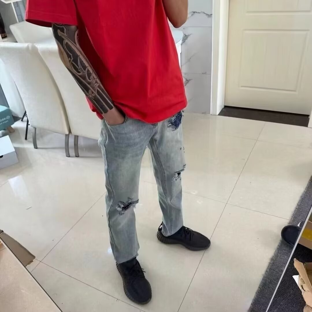アメリカ式高街潮牌cleanfitは古いレトロな微ラッパを作ってジーンズを修理します。