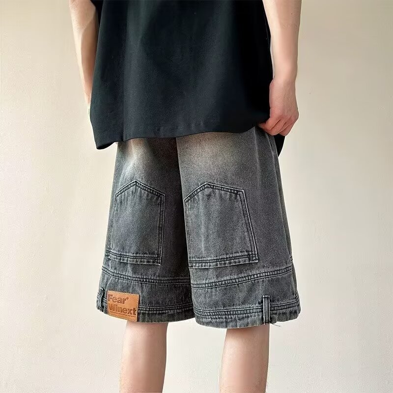 アメリカの高街はデニムの半ズボンの男性の夏の薄いタイプのファッションのブランドの復古の水洗いのごろつきのかっこいいゆったりしているカジュアルな5分のズボンを詰めます。