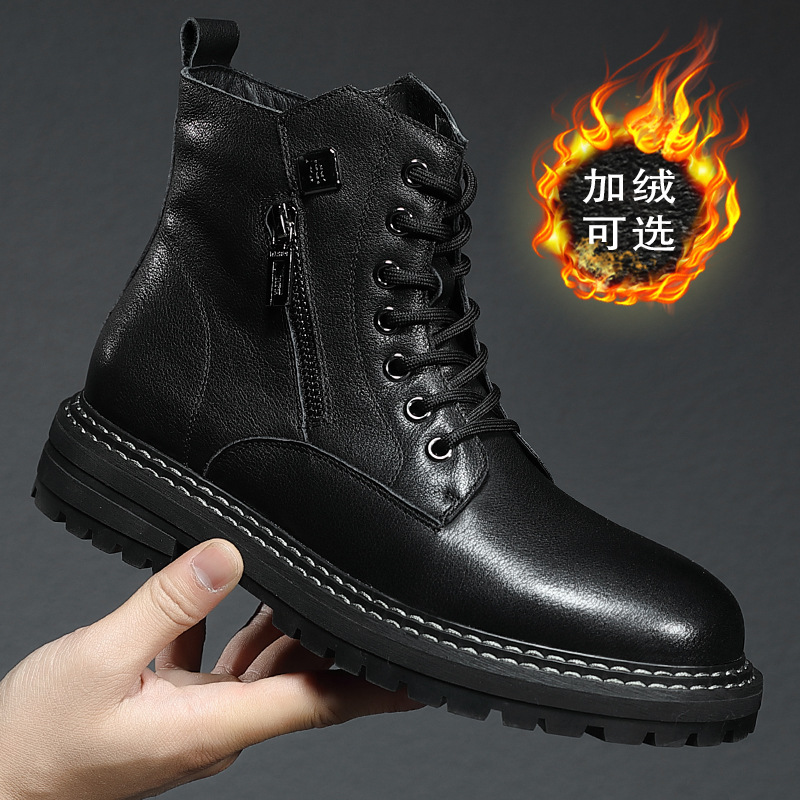 本革紳士靴、第一層牛革、冬用裏起毛シューズ、スポーツメンズカジュアル革靴、身長アップ、滑り止め、耐摩耗性
