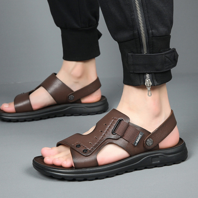 メンズサンダル本革夏牛革ビーチシューズ 2025 ドライビングウェア滑り止め両用お父さん男性通気性滑り止め
