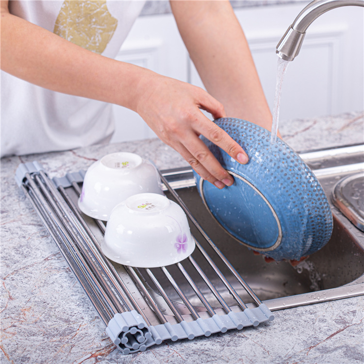 クロスボーダー食器水切りラックキッチン用折りたたみ式シリカゲル304ステンレス製フィルターラック
