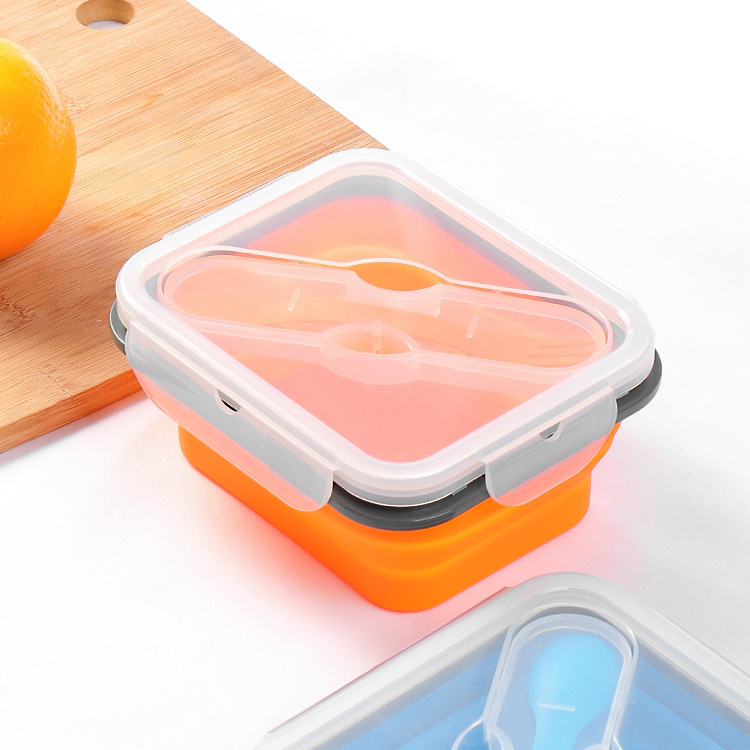 二格シリカゲル弁当箱シリカゲル折り畳み弁当箱プラチナシリカゲル弁当箱携帯型折り畳み可能