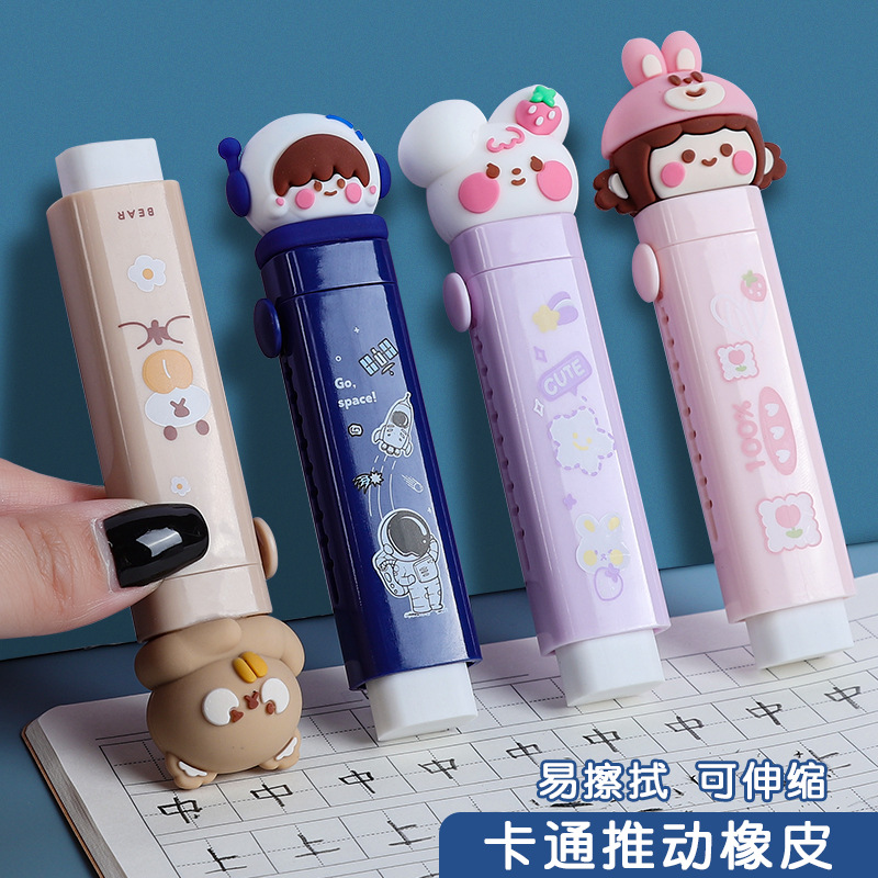 義烏出荷. 安全で異臭のない押し引き消しゴム小学生のかわいいアニメは子供専用です。