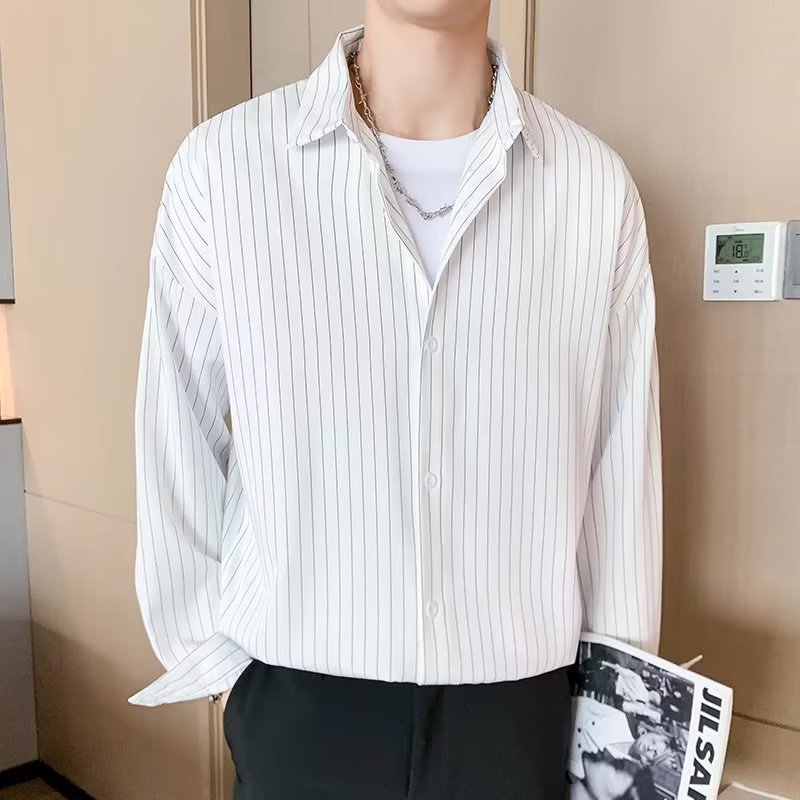 秋のごろつきのハンサムなファッションのinsのストライプの長袖のシャツのオーバーの男性のカジュアルな服の韓国版のファッションの男性の黒いシャツ