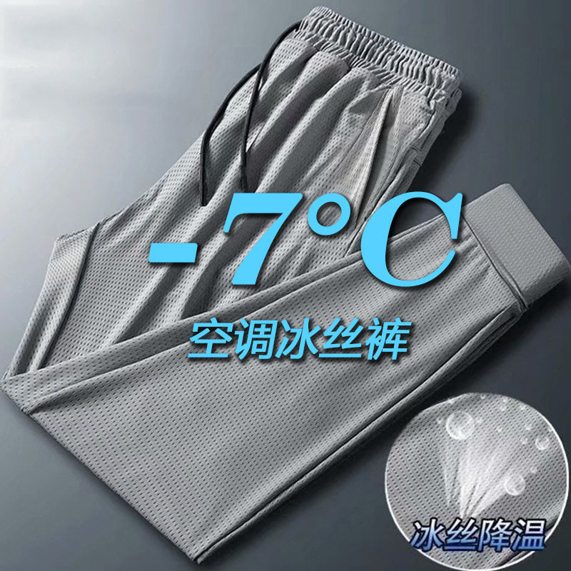 2021夏の薄い氷糸カジュアルパンツ男性メッシュ通気性エアコンパンツ運動ズボン足つきズボン代発