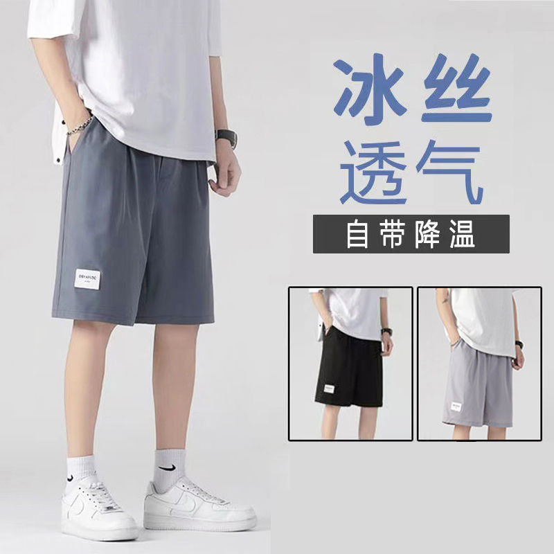 カジュアルパンツ男性用の薄い通気性ストレートタイプのゆったりとした五分ズボンのファッション夏には、氷の糸の速乾ショートパンツを合わせます。