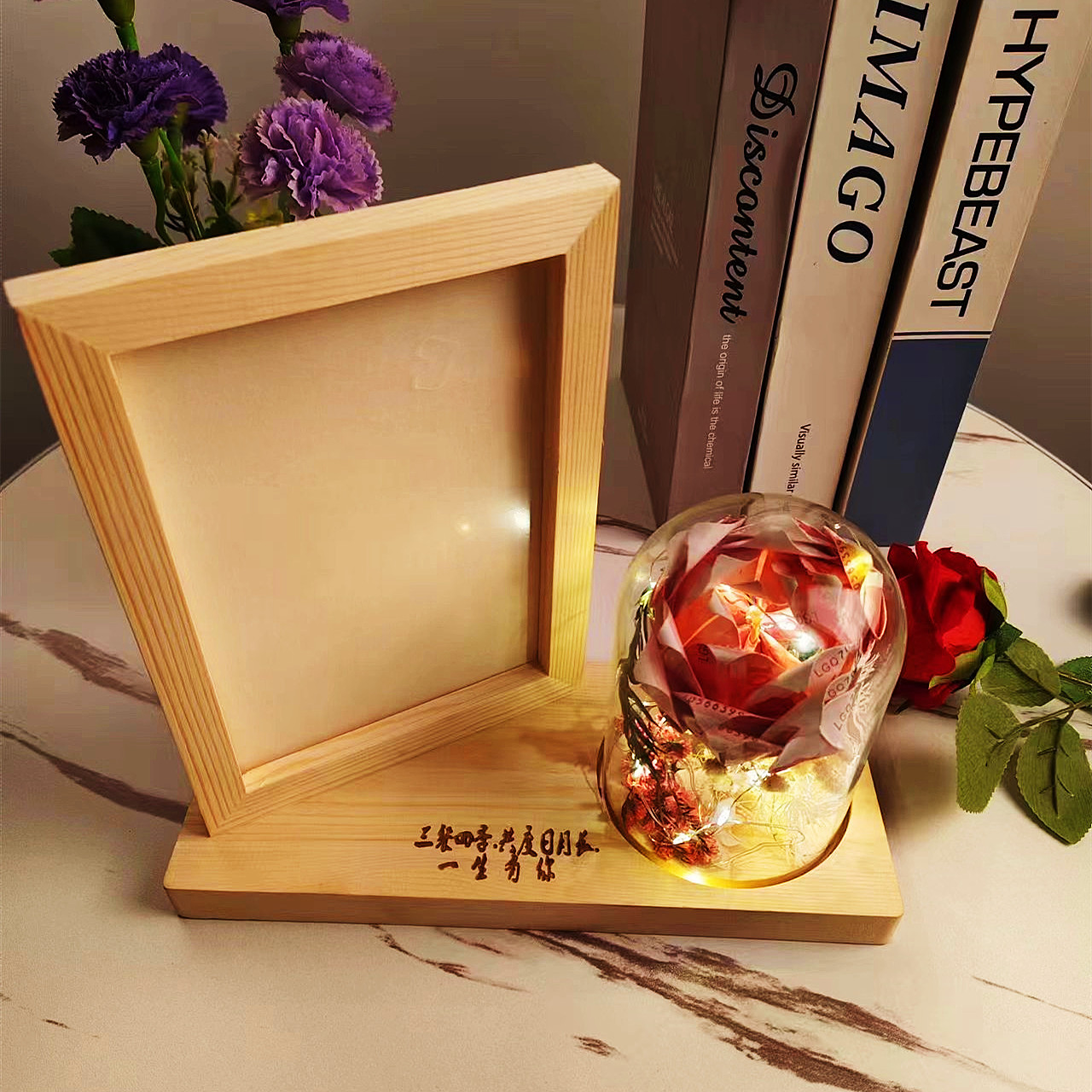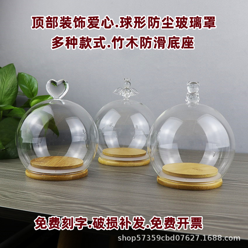 クロスボーダー永生花球形ガラスカバー積み木ブラインドボックス手作りdiy手作りダストカバー竹木製滑り止め底