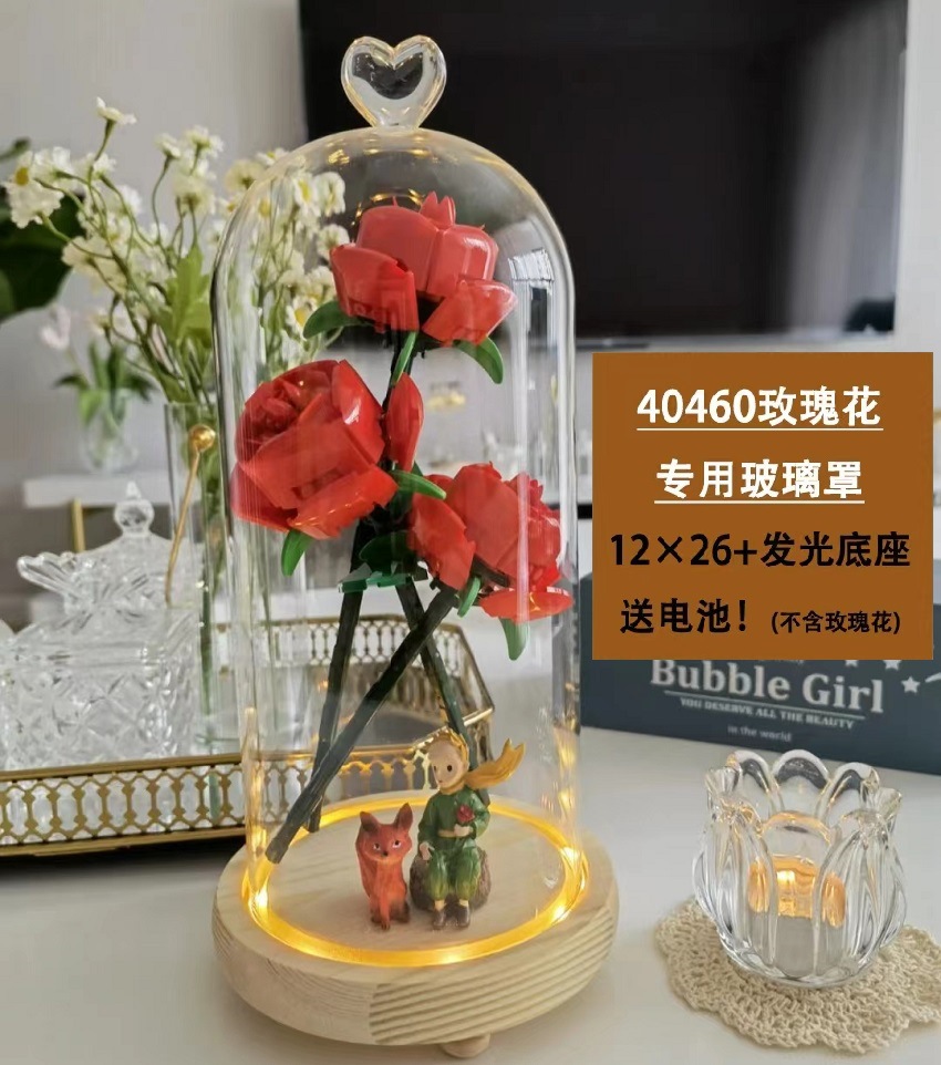 プリザーブドフラワー ガラスケース ローズ 透明オーナメント 誕生日DIYフィギュア ブラインドボックス 積み木 防塵ディスプレイボックス 手作り
