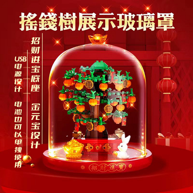 創意招財進宝ガラスカバー適用発財樹40648金振り木展示箱発光モデルdiy積み木