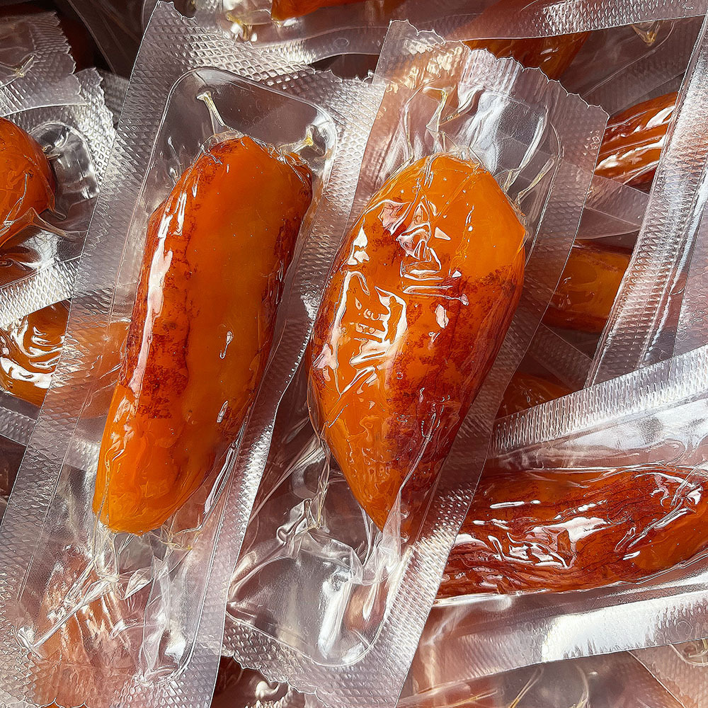 メーカーが卸売りしています。皮付きのサツマイモの真空サツマイモを干して蒸します。