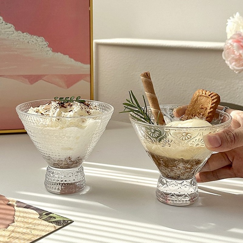 ネット赤レリーフ高脚アイスクリームカップ甘いアイスクリームカップヨーグルトカップクリエイティブinsミルク昔冷たい飲み物グラス