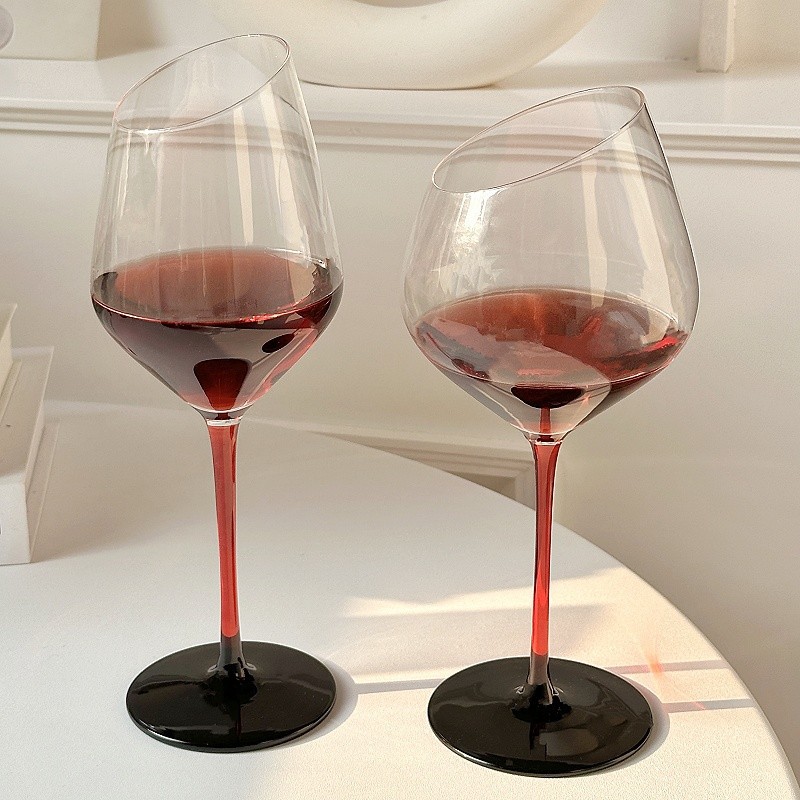 フランス式赤バー黒蝶ネクタイガラスワイングラス斜口シャンパングラスワイングラス創意大容量高足カップ